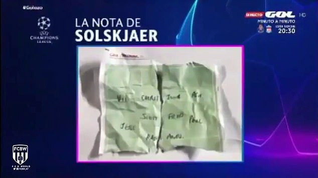 ဘာစီလိုနာအိမ္ကြင္းမွာ သြားေရာက္ယွဥ္ျပိဳင္ျပီး အေရးနိမ့္ခဲ့တဲ့ပြဲမွာ ပြဲစဥ္အတြင္း ယူႏုိက္တက္မန္ေနဂ်ာ ဆိုးရွားဟာ နည္းစနစ္ပိုင္း အေျပာင္းအလဲ ကစားဖို႔အတြက္ တိုက္စစ္မွဴး ရပ္ဖိုဒ့္ကို မွတ္စုအပိုင္းတစ္ရြက္ ေပးပို႔ခဲ့ပါတယ္။