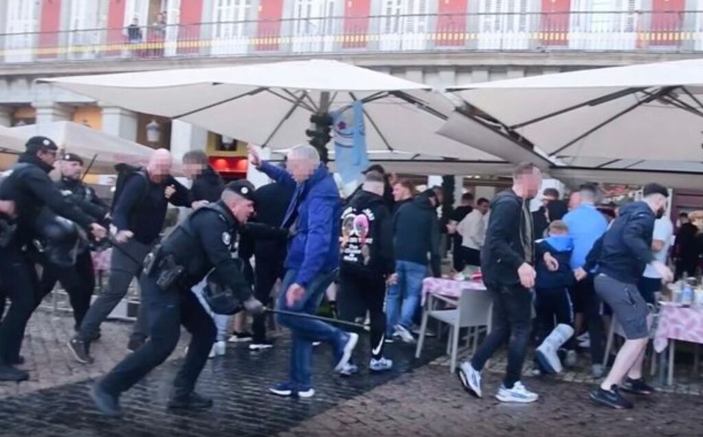 စပိန်နိုင်ငံ မက်ဒရစ်မြို့က လမ်းမအချို့မှာ ချယ်ဆီးနဲ့ မန်စီးတီးပရိသတ်တွေ ထိပ်တိုက်တွေ့တဲ့ ရန်ပွဲအချို့ကြောင့် နံပါတ်တုတ်တွေ ကိုင်ဆောင်ထားတဲ့ မက်ဒရစ် ရဲအရာရှိတွေဟာ ဝန်ဟန့်တားမှုတွေ လုပ်ခဲ့ရတယ်လို့ ဒေးလီးမေလ်းက ဖော်ပြပါတယ်။