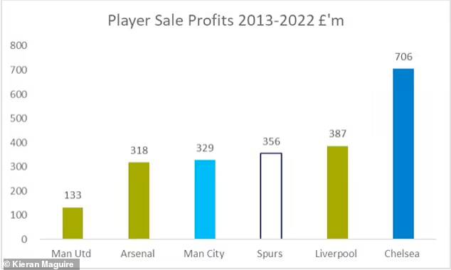 အဆိုးရွားဆုံးကတော့ ၂၀၁၃ ခုနှစ် မှာ ဆာအဲလက်စ် ထွက်သွားပြီးတည်းက ၂၀၂၂ ခုနှစ်ထိ ယူနိုက်တက်ရဲ့ ကစားသမား ရောင်းချမှုကနေ ရတဲ့ အကျိုးအမြတ်ဟာ ပေါင် ၁၃၀ သန်းပဲ ရှိထားပါတယ်။ ဒါဟာ တစ်နှစ်မှ ပေါင် ၁၃ သန်း ဝန်းကျင် ပြန်ရတဲ့ အဓိပ္ပာယ်ဖြစ်ပါတယ်။